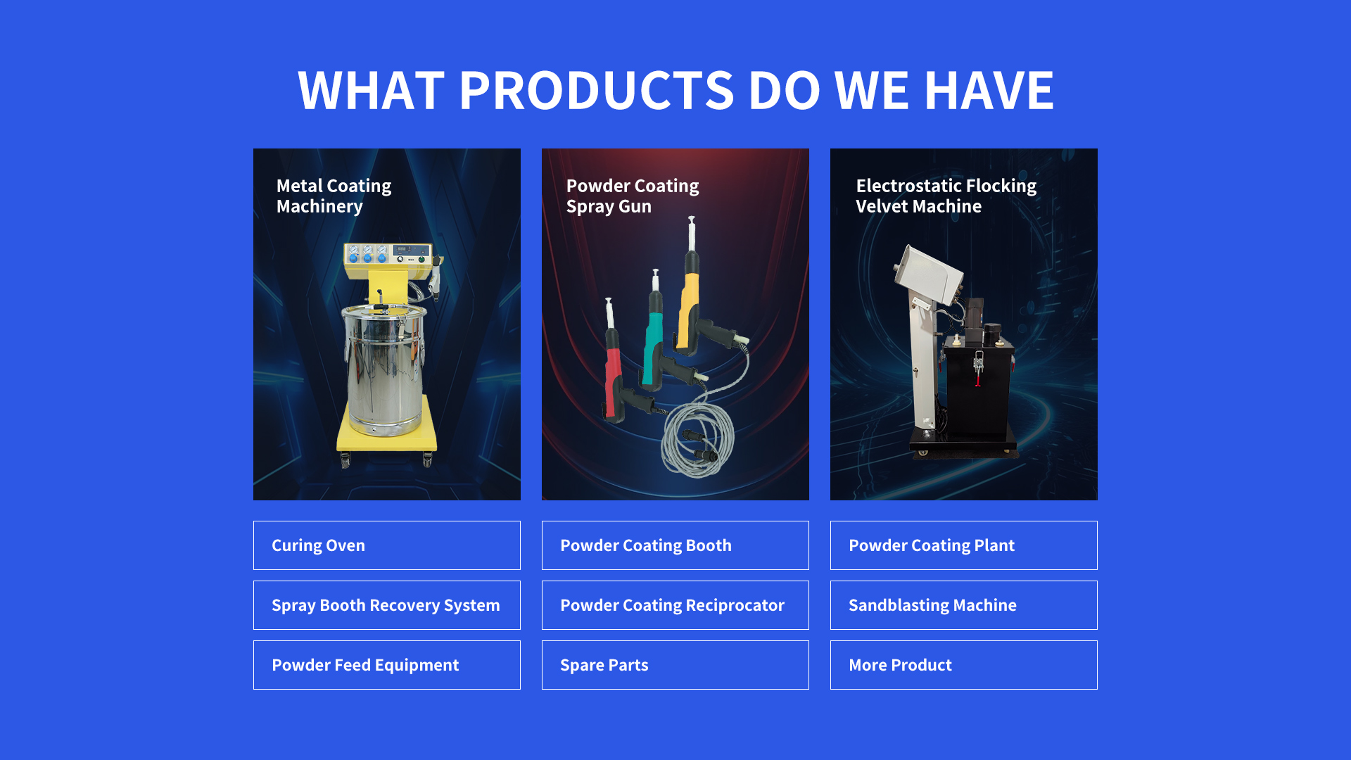 A Commercial Manual Powder Coating Machine is a user-operated system designed for applying dry powder coatings to metal surfaces. Key components include a handheld electrostatic spray gun, powder reservoir, control panel, and curing oven (optional).